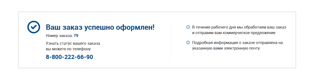 <div class="cart-complete__text">В течение рабочего дня мы обработаем ваш заказ и отправим вам коммерческое предложение</div>