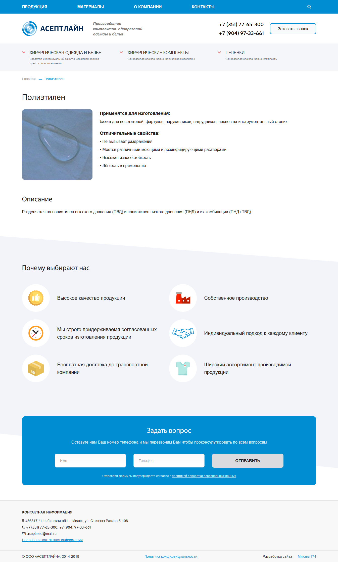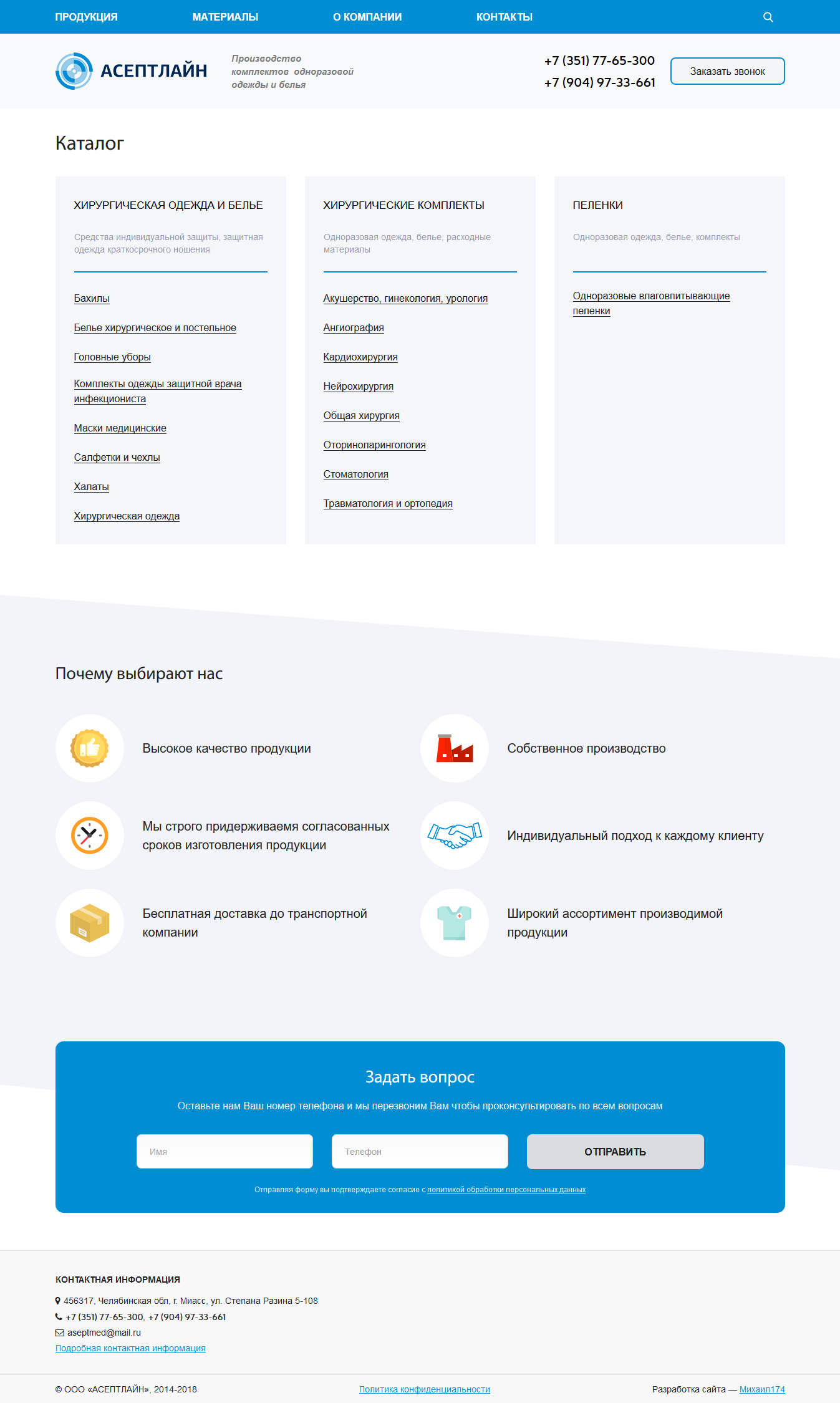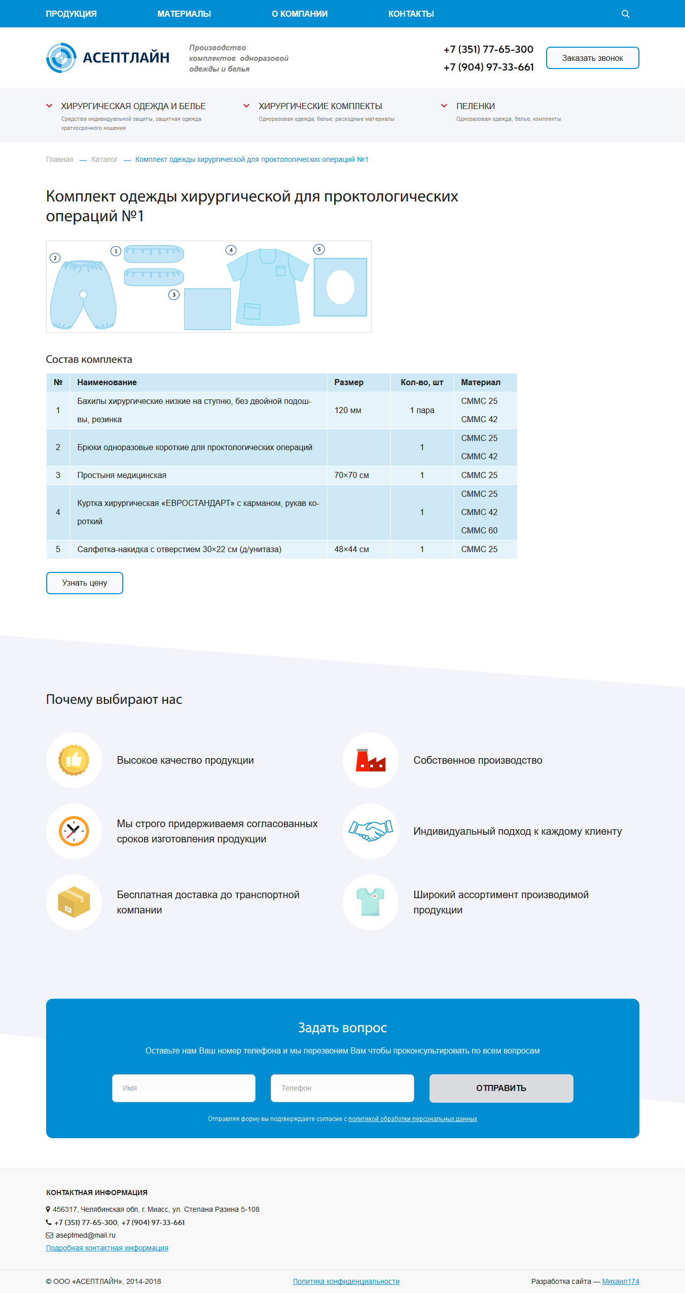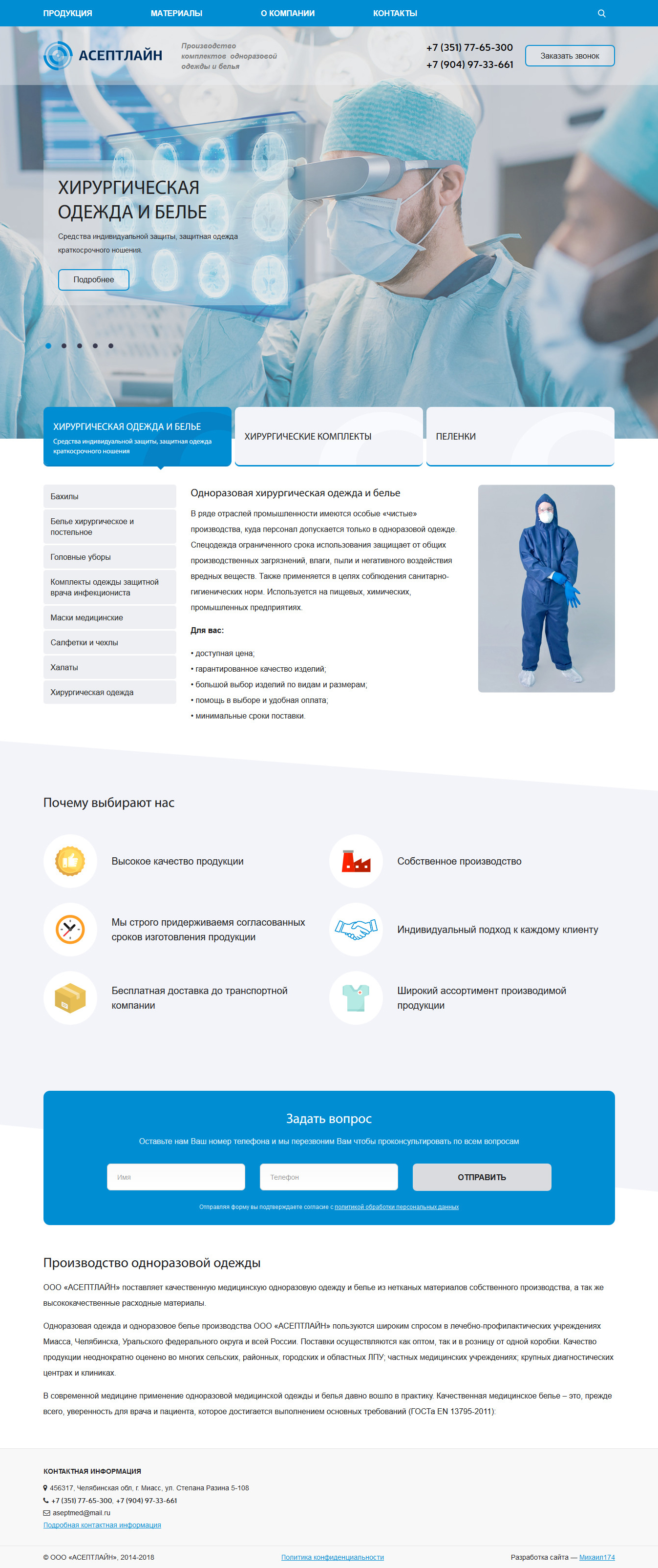 Производство комплектов одноразовой одежды и белья.