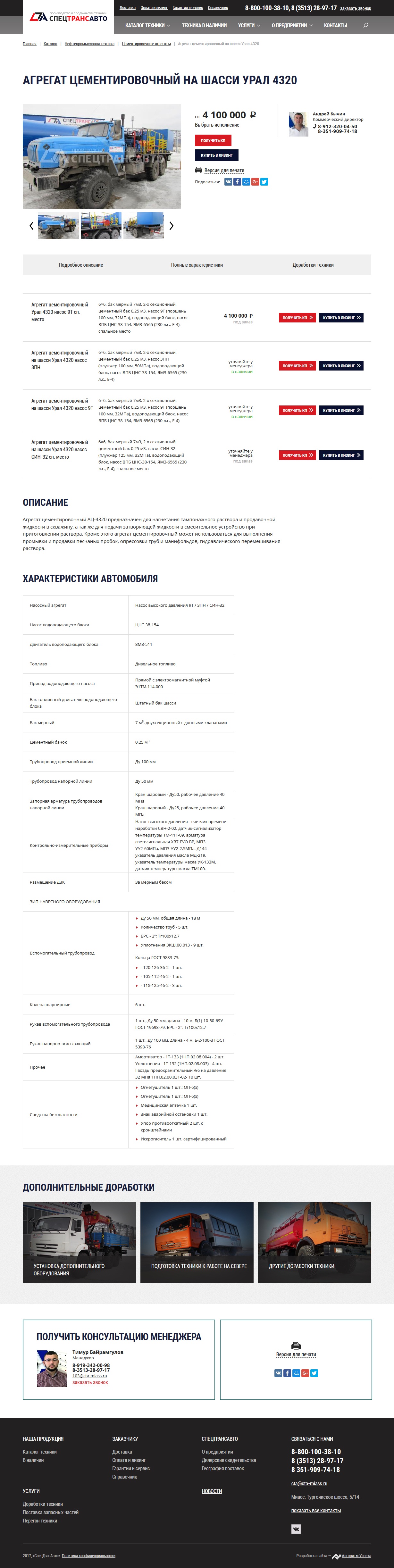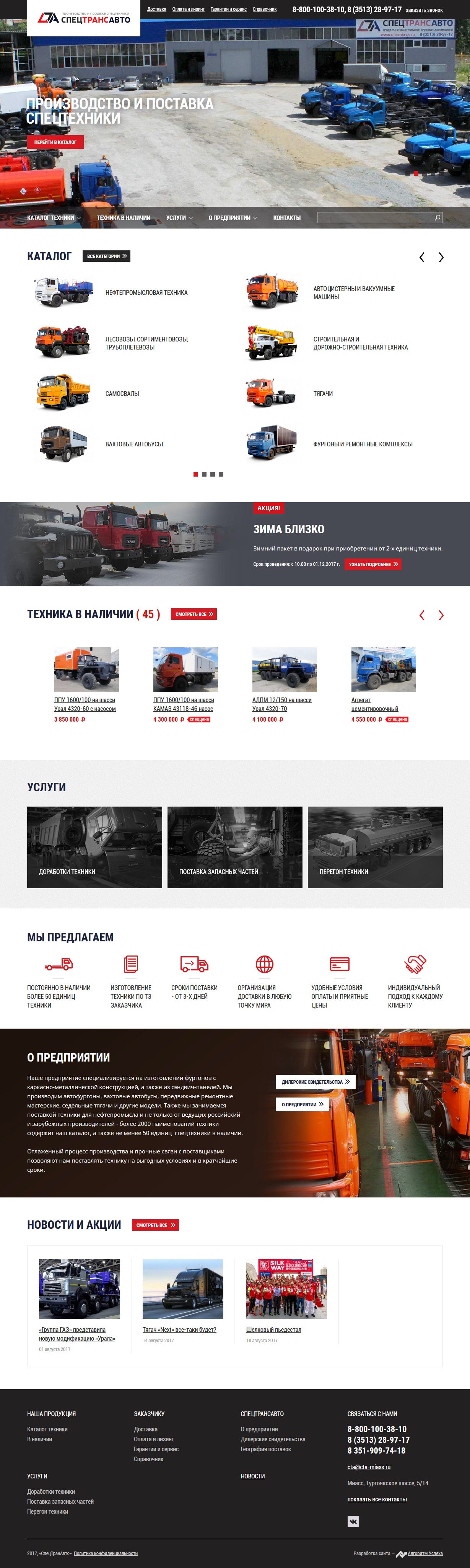 Производство и поставка спецтехники «УРАЛ» и «КАМАЗ». Верстка + натяжка на cms.