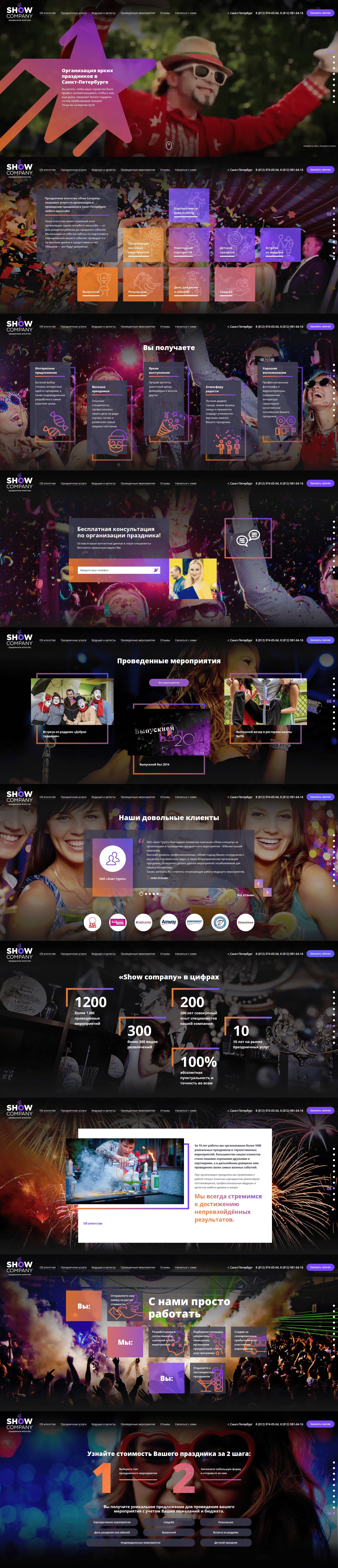 Праздничное агентство. Организация праздников в Санкт-Петербурге. Главная страница с полноэкранной прокруткой.