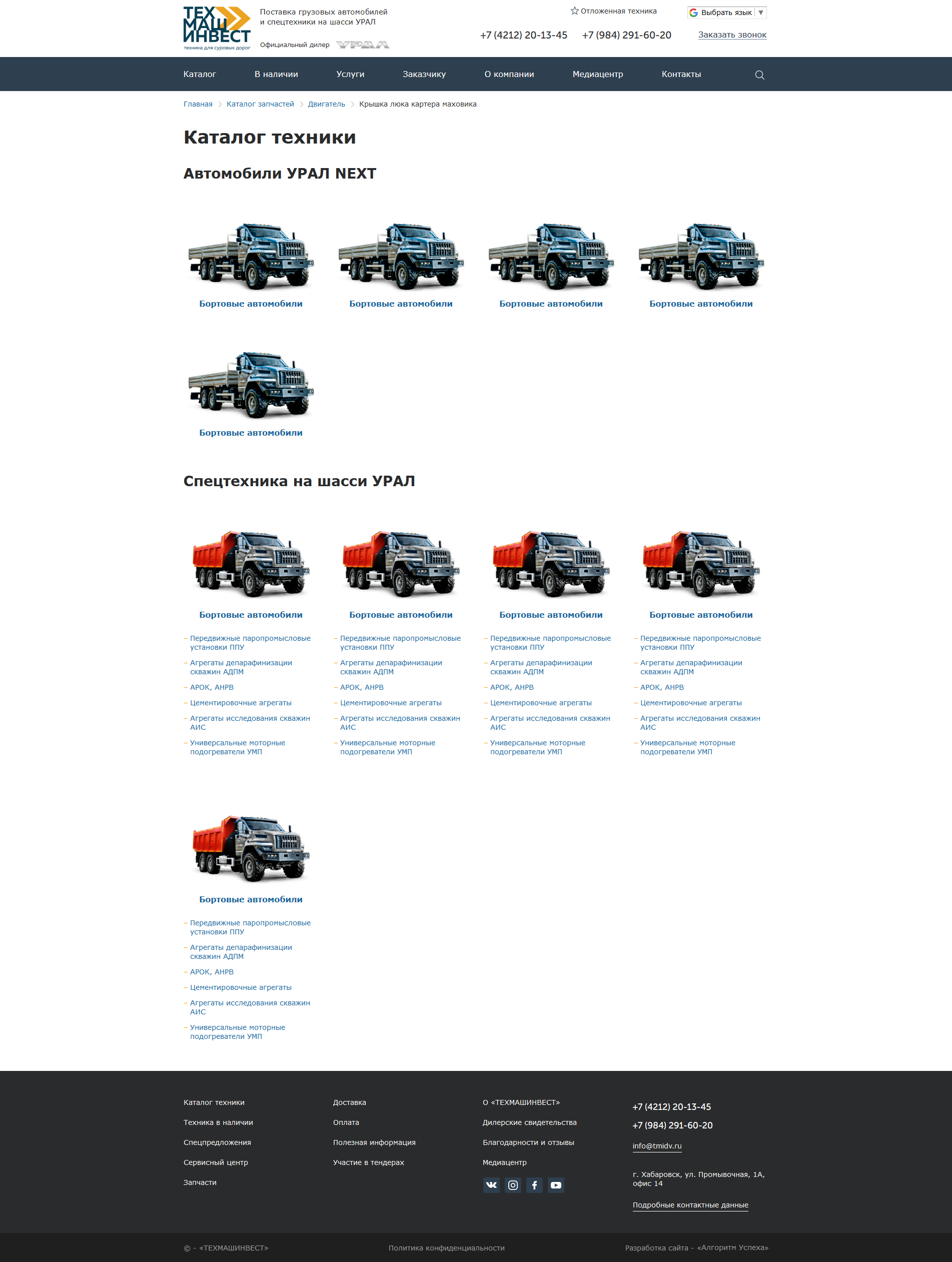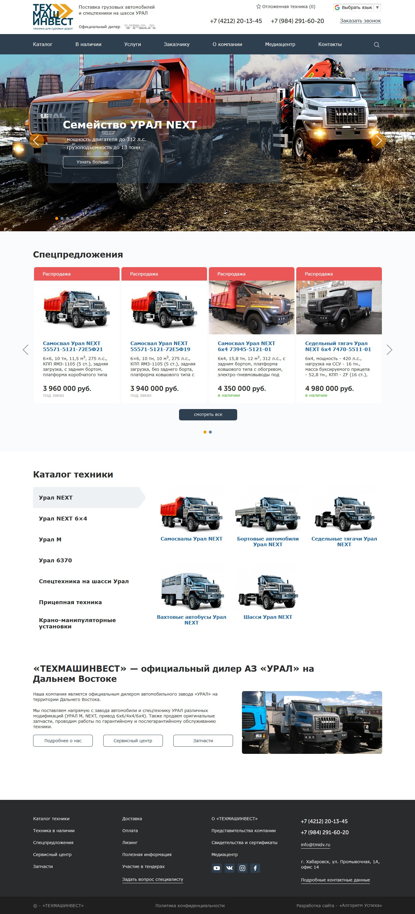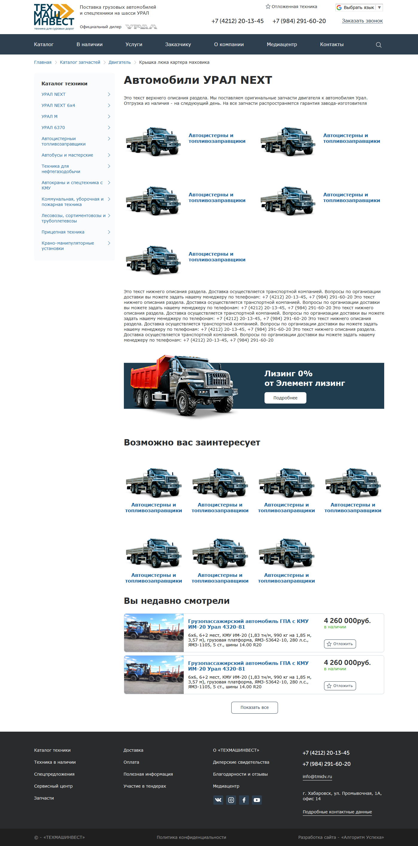 Поставка грузовых автомобилей и спецтехники на шасси Урал. Адаптирован под мобильные устройства.